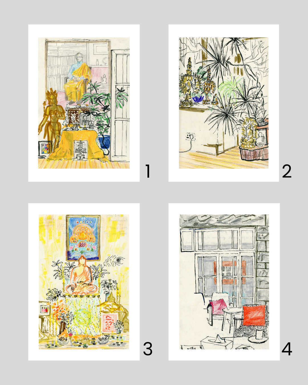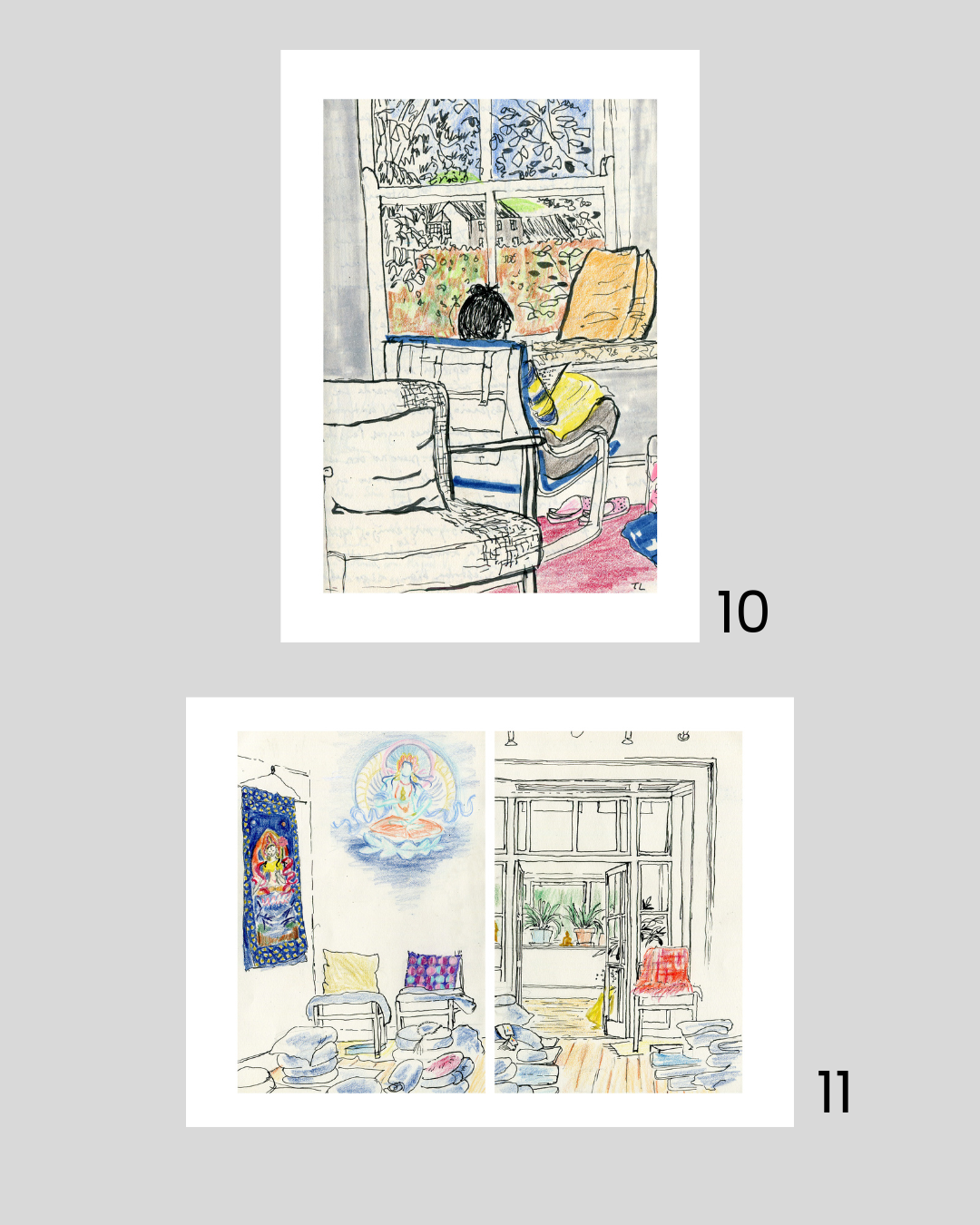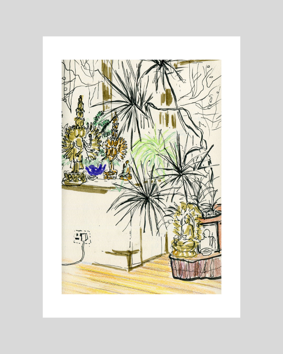This is a collection of sketches drawn in Tiratanaloka, Wales. Most of the drawings were made at the Ethics Retreat in November 2025, when I had the idea of creating a collection of prints showing the corners and shrines of this magical, beloved place.