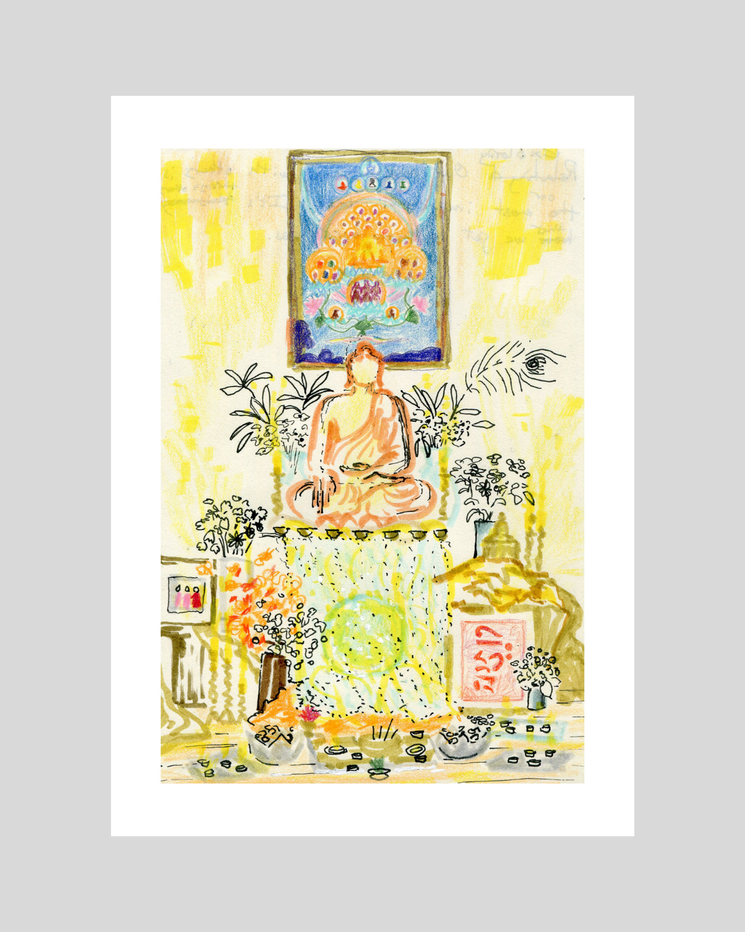 Together, we took refuge in the Three Jewels and practised Metta. Looking at these drawings reminds me of the many moments of silence, peace, inspiration and devotion I experienced, and of the deep joy I felt while drawing.